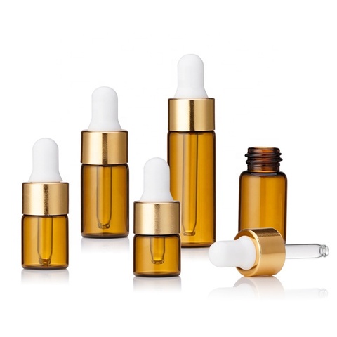 1ml 2ml 3ml 5ml gelbbraune Glasflasche für ätherische Öle Weiße Latex spitze mit goldener Aluminium-Rings chraub verschluss dichtung